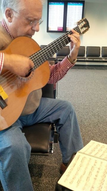 スペイン・マラガ空港で、フライト待ちの時間に練習するペペ・ロメロさんの珍しい写真です。