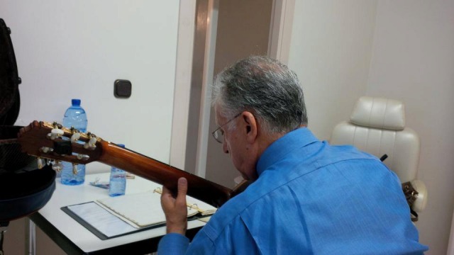 この日予定された「現代ギター」誌のインタビュアー「濱田滋郎先生」を待つ間の写真です。